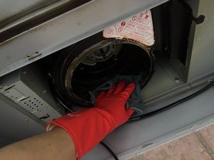 専用のアルカリ洗剤を塗布し、ドラム内も徹底的に清掃!