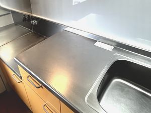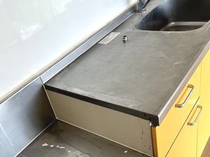 浸け置きしたキッチン汚れもスムーズに落ち、再度掃除機掛けをしてからワックスを塗り全体的に明るく清潔感のあるお部屋になりました。