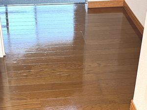 作業後は床のツヤが戻り見違える仕上がりになりました。部屋全体も明るくなり